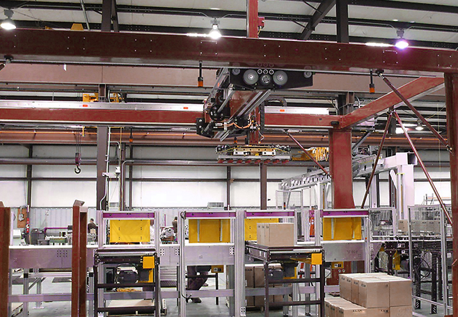 億峯提供輪胎出入庫桁架式機(jī)器人,實(shí)現(xiàn)跨度大,速度快,占地面積小,提供整套交鑰匙工程。